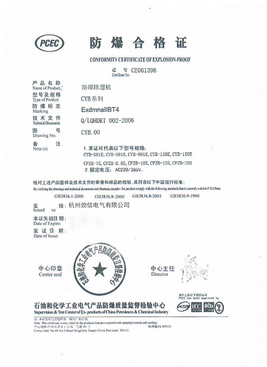 防爆合格證書