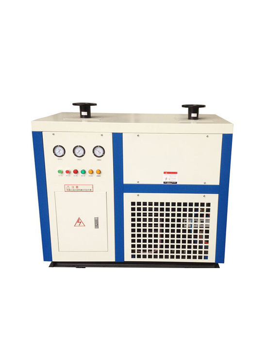 1、 Laifu freeze type compressed air dryer (lyophilizer) is a special equipment used to deal with the free water, oil and solid suspended solids in the atmosphere, and produce low-quality compressed air after being compressed by air compressor. Tyad and tycd type freeze dryers are mainly purified by air source of small and medium-sized air compressor stations. According to the requirements of using process, the auxiliary units such as filter, cooler, gas-liquid separator and precision filter are selected reasonably. Working principle&The amount of water vapor in compressed air is determined by the temperature of compressed air: in the case of keeping the pressure of compressed air basically unchanged, reducing the temperature of compressed air can reduce the content of water vapor in compressed air, and the excess water vapor will condense into liquid. According to the corresponding relationship between saturated vapor pressure and temperature of water, the refrigeration device is used to cool the compressed air to a certain dew point temperature to separate out the contained water. The water is discharged through the steam water separator and the electric drainer, so that the compressed air can be dried.